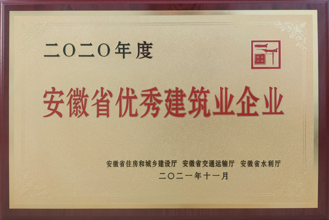 • 2020年度安徽省優秀建筑企業榮譽證書