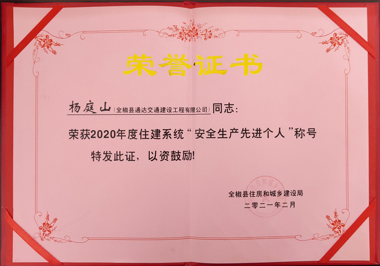 • 2020年度住建系統“先進生產個人”稱號榮譽證書