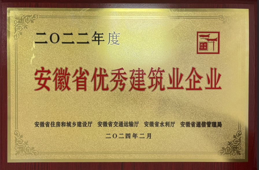 • 全椒縣通達榮獲2022年度安徽省優秀建筑業企業榮譽獎牌